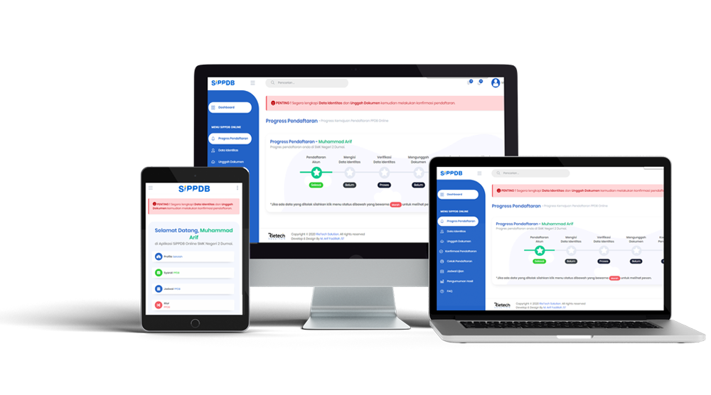 Adalah Sebuah sistem yang dirancang untuk melakukan otomasi pelaksanaan Penerimaan Peserta Didik Baru (PPDB) secara Online. Dari proses pendaftaran, seleksi, hingga pengumuman hasil seleksi secara nyata (Real Time).